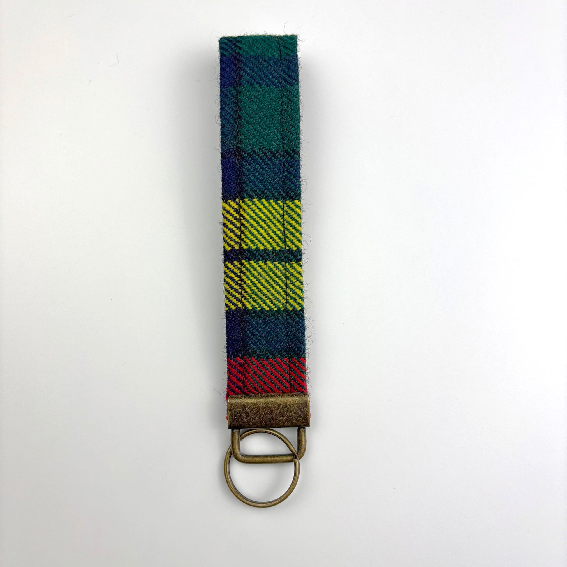 Wrist strap keyring. Handmade in Scotland using 100% wool tartan heavyweight fabric.Â