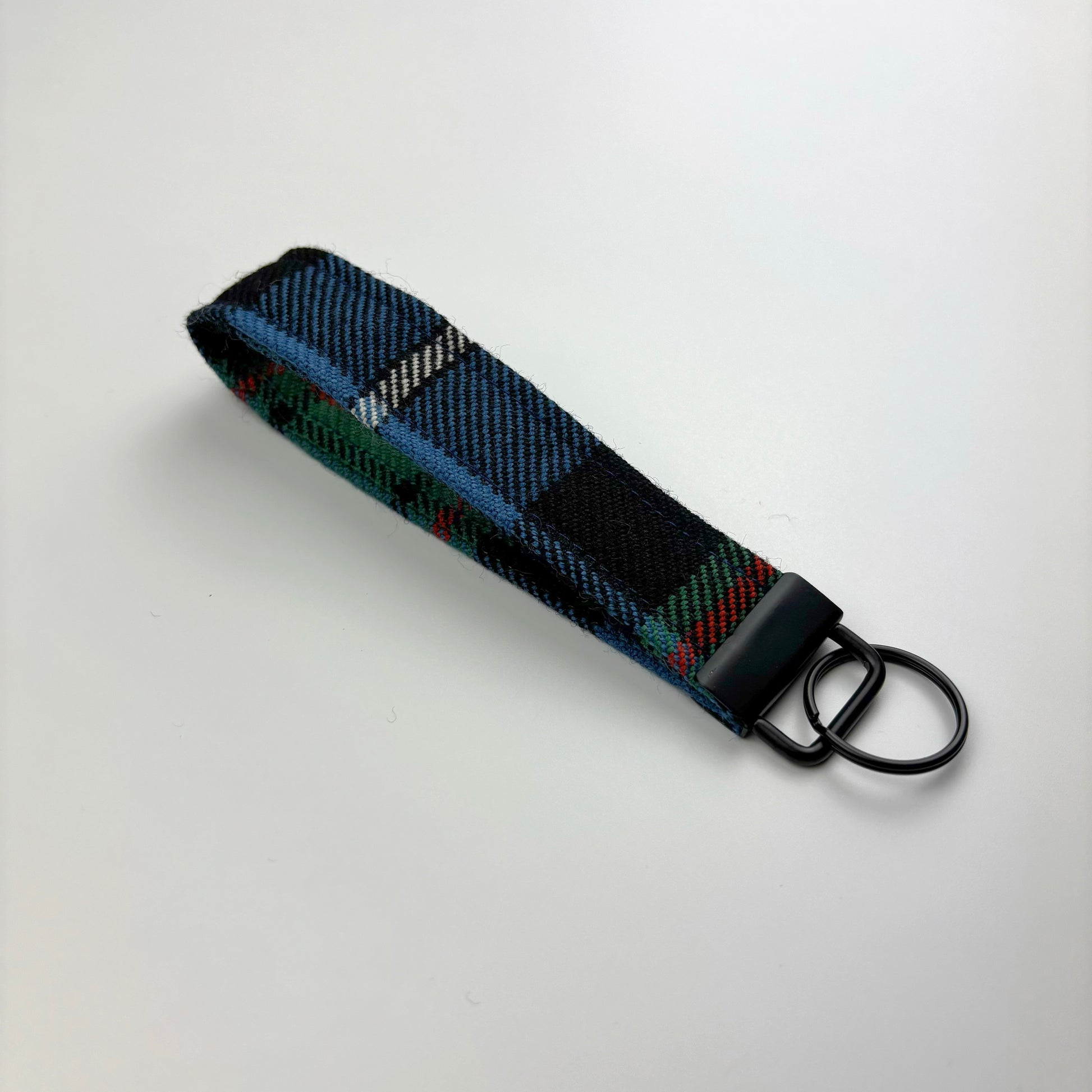 Wrist strap keyring. Handmade in Scotland using 100% wool tartan heavyweight fabric.